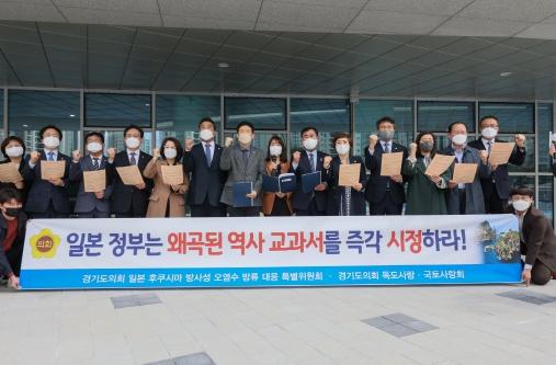 [한국뉴스타임=편집국] 경기도의회 일본 후쿠시마 방사성 오염수 방류 대응 특별위원회(위원장 안혜영, 수원11)와 독도사랑ㆍ국토사랑회(회장 김용성, 비례)는 2022년 3월 31일 일본 정부의 왜곡된 역사 교과서를 규탄하는 성명을 발표했다.