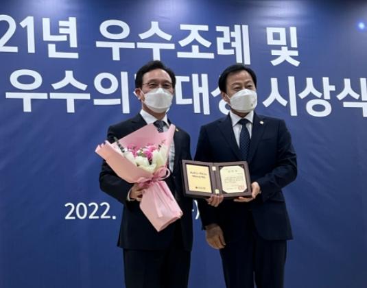 한편, 우수조례 시상은 능동적이며 선제적인 의정활동으로 모범이 된 우수한 지방의원을 대상으로 매년 우수조례 시상을 하고 있으며, 이날 시상식은 특별히 제12회 우수의정대상 시상도 함께 개최되어 우수조례 수상자 30명, 우수의장대상 수상자 29명으로 총 54명(공동수상자 5명)이 우수의원으로서 수상의 영예를 안았다.