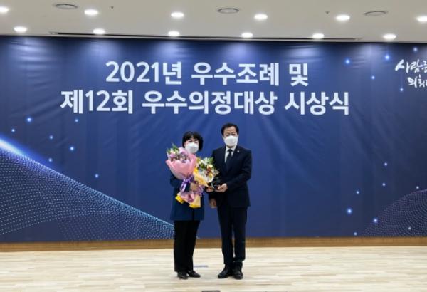 원미정 의원은 “우수의정대상이라는 큰 상을 주신 것에 감사드린다.”면서, “앞으로도 도민들이 필요로 하는 제도 마련과 정책 구현을 위해 최선을 다하겠다.”고 수상 소감을 밝혔다.