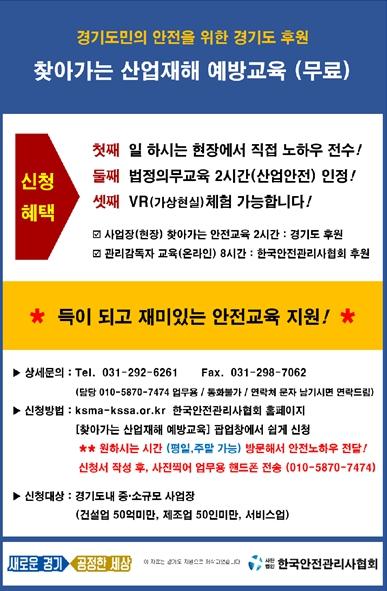 배진기 경기도 노동권익과장은 “산업재해 예방을 위한 최소한의 노력은 바로 안전교육”이라며 “노동자가 우선되는 산업현장을 조성한다는 생각으로 소규모 사업장, 위험한 산업현장의 산재 예방 교육 활동에 앞장서겠다. 많은 사업장의 관심과 신청을 바란다”고 밝혔다.