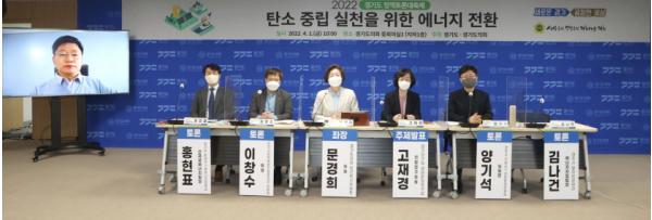 [한국뉴스타임=편집국] 경기도의회 문경희 부의장(더불어민주당, 남양주2)이 좌장을 맡은「탄소 중립 실천을 위한 에너지 전환 토론회」가 4월 1일(금) 경기도의회 중회의실1에서 개최됐다. 이번 토론회는 경기도와 경기도의회가 공동주최한‘2022 경기도 상반기 정책토론 대축제’의 일환으로 진행되었다.