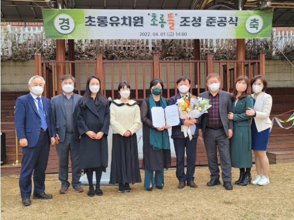 [한국뉴스타임=편집국] 경기도의회 교육행정위원회 남종섭(더불어민주당, 용인4) 위원장은 1일 용인시 기흥구 영덕동에 소재한 공립단설 초롱유치원 야외놀이시설인 ‘초롱뜰’ 준공식에 참석해 교육환경개선에 기여한 공로로 감사장을 받았다. 이날 준공식에는 조성희 유치원장을 비롯해 고민정 운영위원장, 윤순영 학부모회장 등 학교 관계자와 강원하 교육장, 이종민 미래국장 등 용인교육지원청 관계자들도 참석했다.