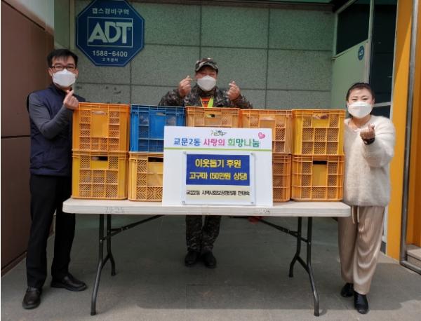 [한국뉴스타임=편집국] 구리시 교문2동 지역사회보장협의체(위원장 한태숙)는 1일 50만원 상당의 고구마를 교문2동 행정복지센터에 후원했다.