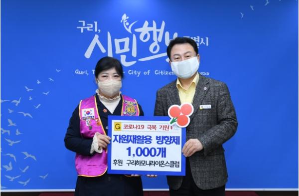 [한국뉴스타임=편집국] 구리시는 지난 1일 시청 3층 민원상담관실에서 구리하모니라이온스클럽(회장 임향호)으로부터 관내 저소득층을 위한 방향제 전달식을 진행했다.