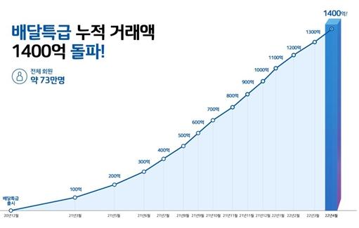 경기도주식회사는 지난 4월 3일 기준 배달특급의 총 누적 거래액 1,400억 원을 돌파했다고 7일 밝혔다.