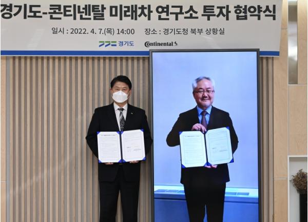이한규 경기도 행정2부지사와 오희근 콘티넨탈오토모티브코리아㈜ 대표는 7일 경기도 북부청사 상황실에서 이런 내용을 담은 온라인 투자 협약을 체결했다. 이날 협약식에는 마틴 행켈만(Martin Henkelmann) 한독상공회의소 대표가 참석해 축사를 전했다.