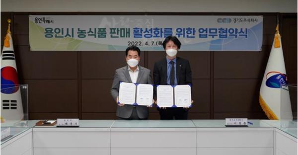 경기도주식회사는 용인시와 지난 7일 용인시청에서 이 같은 내용의 ‘용인시 농식품 판매 활성화를 위한 업무협약’을 체결했다고 밝혔다.