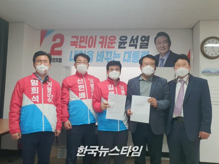 [한국뉴스타임=편집국] 6.1 지방선거 가평군수 국민의힘 예비후보들이 원팀 결의를 하였다.