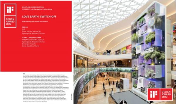 ‘LOVE EARTH, SWITCH OFF - 지구를 살리는 어둠’은 관람자의 참여로 자연이 살아나는 모습을 표현한 인터랙티브 미디어아트 콘텐츠다. 2021년 경기도의 공공콘텐츠 제작지원 사업을 통해 제작됐다. 이번 iF 어워드에서 같은 부문 경쟁작 평균 점수보다 100점을 웃도는 높은 평가를 받았다.