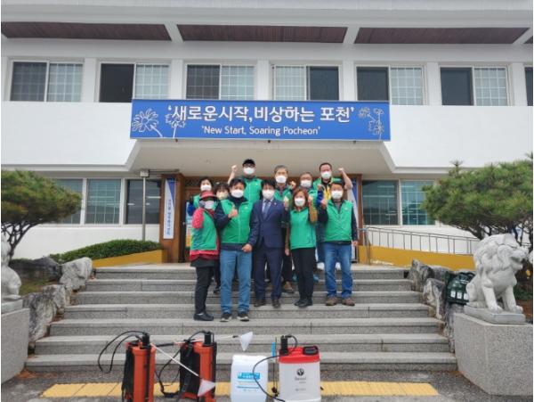 포천동 새마을회 회원 20여 명이 참여한 가운데 포천동행정복지센터 및 포천동 주민자치센터, 버스정류장 등 시민들이 함께 이용하고 있는 시설물에 대한 방역 활동을 펼쳤다.