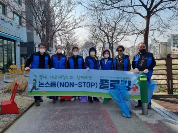 ‘논스톱(NON-STOP) 플로깅’은 상습 쓰레기 무단 투기 취약지역을 사회단체와 매칭해 집중 관리하는 것으로, 별내동 용암천 주민공동체, 바르게살기운동 남양주시협의회 별내동위원회, 자원봉사센터 별내동 자원봉사단, 별내동 통장협의회, 별내동 주민자치위원회에서 매주 릴레이 형식으로 활동을 진행한다.