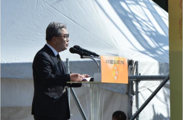 [한국뉴스타임=편집국] 이재정 경기도교육감이 16일 안산 화랑유원지에서 개최된 4.16세월호참사 8주기 기억식에 참석해 추도사를 낭독했다.