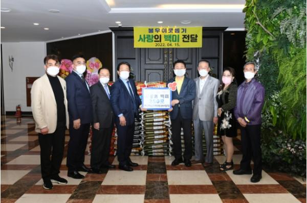 구리시(시장 안승남)는 지난 15일 딸기원2지구 주택재개발정비사업조합(조합장 김효일)으로부터 사랑의 백미 250포를 전달 받았다.