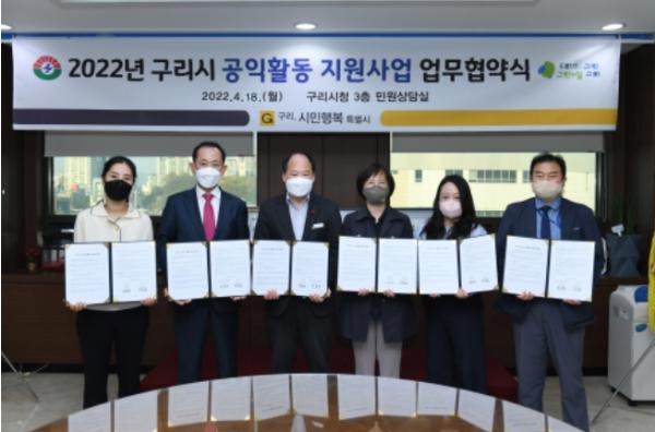 [한국뉴스타임=편집국] 구리시는 18일 구리시청 3층 민원상담실에서 ‘2022년 구리시 공익활동 지원사업’ 업무 협약식을 진행했다.