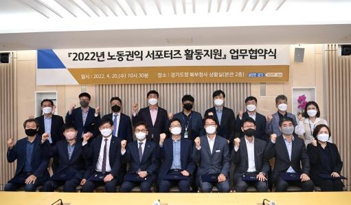 경기도는 20일 경기도청 북부청사에서 고용노동부 경기지청 및 12개 시군, 편의점 프랜차이즈 5개 사(㈜GS리테일, 롯데지알에스(주), ㈜BGF리테일, ㈜코리아세븐·롯데씨브이에스711(주), 이마트24)와 ‘노동권익 서포터즈 활동지원 업무협약’을 체결했다.