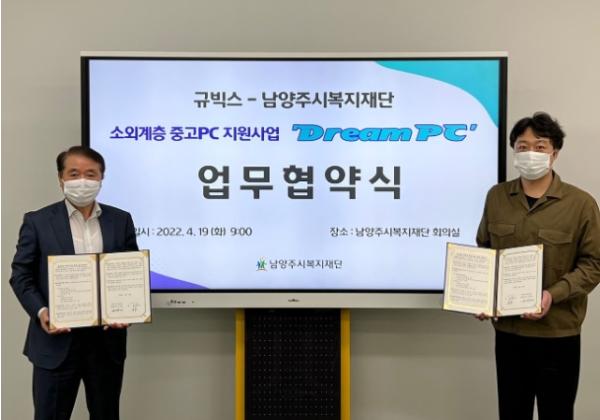 남양주시복지재단(대표이사 우상현)은 지난 19일 규빅스(대표 임대규)와 업무 협약을 체결하고, 관내 소외계층을 대상으로 한 중고 PC 지원 사업 ‘Dream PC’를 진행한다고 밝혔다.