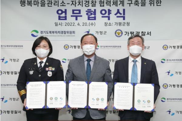 경기도북부자치경찰위원회는 20일 오전 가평군청에서 가평군, 가평경찰서와 함께 이 같은 내용의 ‘행복마을관리소-자치경찰 협력체계 구축을 위한 업무협약’을 체결했다.