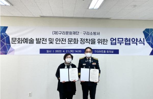 [한국뉴스타임=편집국] 구리문화재단은 21일 구리아트홀 회의실에서 문화예술 발전 및 안전 문화 정착을 위해 구리소방서(서장 박철수)와 업무 협약을 진행했다.