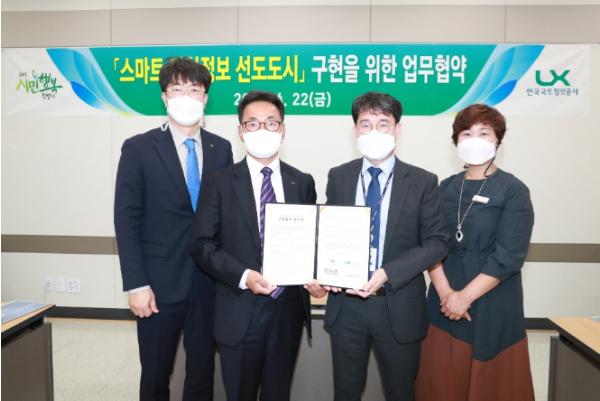 [한국뉴스타임=편집국] 구리시와 한국국토정보공사(LX공사)는 22일 시청에서 황병진 정보통신과장과 LX공사 양영휴 지하정보처장 등이 참석한 가운데‘스마트 지하정보 선도도시’구현을 위한 양해각서(MOU)를 교환하고 스마트 지하정보 구축과 시민 안전 행정서비스 모델 개발을 위해 상호 협력을 약속했다.
