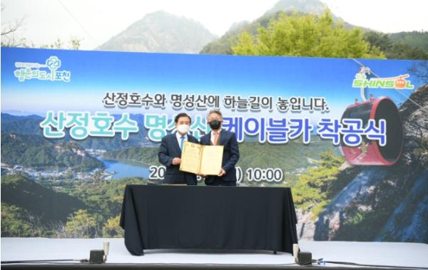 [한국뉴스타임=편집국] 포천시는 지난 24일 ㈜신솔과 함께 케이블카 조성사업 착공식을 갖고 ‘산정호수 명성산 케이블카 조성사업을 위한 실시협약’을 체결했다.
