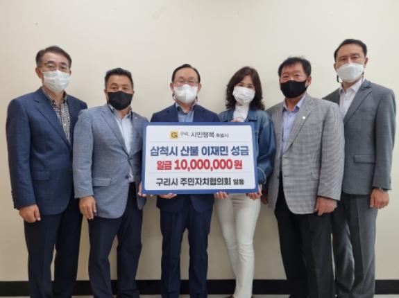 [한국뉴스타임=편집국] 구리시 주민자치협의회 (회장 이수원)가 자매도시 삼척시의 산불 피해 복구 지원을 위해 성금 1,000만 원을 강원도 공동모금회에 지정 기탁했다.