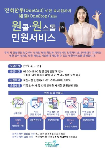 [한국뉴스타임=편집국] 포천시는 생활불편 민원 해소를 위해 접수부터 현장 확인 및 모니터링까지 한층 더 발전된 ‘생활민원 서비스’를 운영한다.
