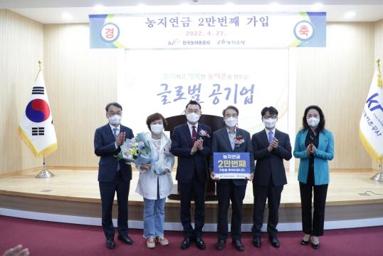2만 번째 가입자는 경기도 가평에 사는 김광식씨(64세)로 전후후박형 상품에 가입해 초기 10년간은 월 234만 원을, 이후부터는 매월 164만 원을 받게 된다. 연금 수령과 함께 해당 농지를 직접 경작할 수도 있지만 김씨는 임대를 통해 추가 소득을 올리기로 했다.
