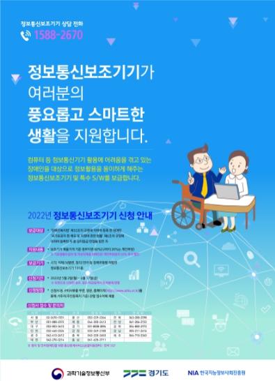[한국뉴스타임=편집국] 경기도는 과학기술정보통신부와 함께 장애인의 학습과 일상생활을 도와줄 정보통신보조기기 121종 750대를 보급하기로 하고 다음 달 2일부터 대상자를 모집한다고 28일 밝혔다.