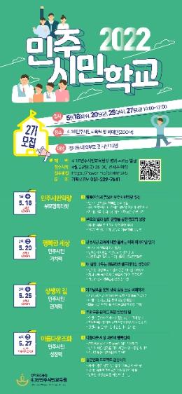 4.16민주시민교육원(원장 전명선)이 29일부터 학부모와 도민을 대상으로 ‘2022 민주시민학교’ 참가 신청 접수를 선착순으로 받는다.