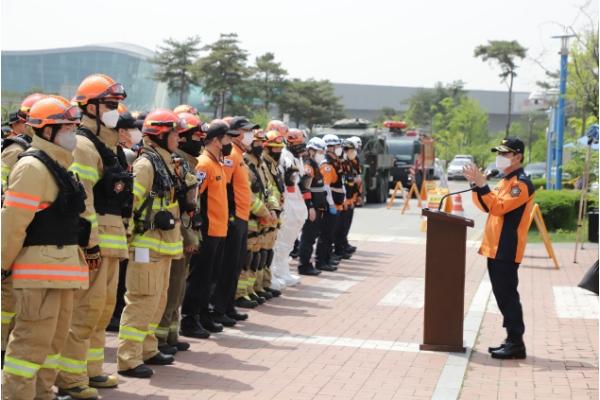 이날 종합훈련에는 오병권 경기도지사 권한대행도 참석해 훈련상황을 참관하며 참가 인원들을 격려하기도 했다.