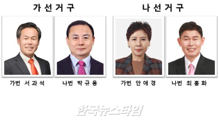 가선거구에 가번 서과석 나번 박규용 예비후보, 나선거구에 가번 안애경. 나번 최홍화 예비후보가 공천 확정되었다.