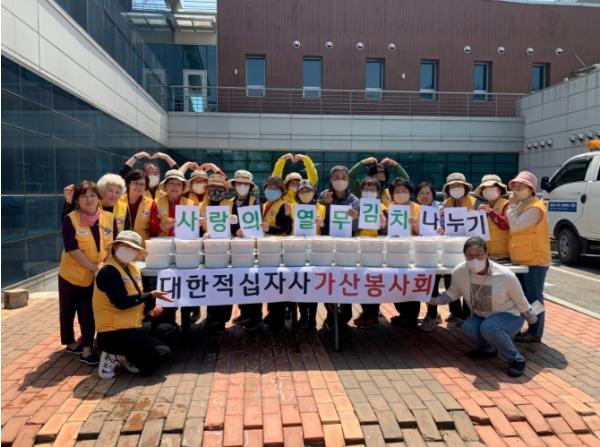 [한국뉴스타임=편집국] 대한적십자사 포천지구 가산봉사회(회장 정영자)는 지난 3일 가산면행정복지센터에서 관내 취약계층을 위한 이불 세탁 및 사랑의 열무김치 나눔 봉사활동을 펼쳤다.