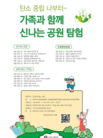 "가족과 함께 신나는 공원탐험은 힐링과 재미가 있는 가족형 생태체험 교육으로 단순히 걷기만 하는 공원을 벗어나, 공원을 느끼고 생각하는 탐색형 프로그램으로 공원의 생태적 기능과 탄소중립 효과 등 다양한 내용의 환경교육을 담고 있다.
