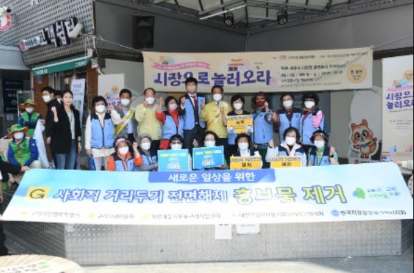 봉사자들은 구리전통시장 일원에서 다중이용시설, 공공시설을 대상으로, 점포에 부착된 사회적 거리두기 홍보물을 제거하고 피켓을 통해 시민에게 개인 방역 수칙을 실천할 것을 홍보했다.