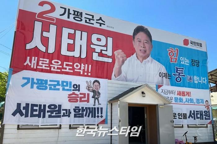 | ( 가평읍 가평군청 앞 옛 해병대사무소에 위치한 국민의힘 서태원 가평군수 후보 선거사무소 전경 ) |