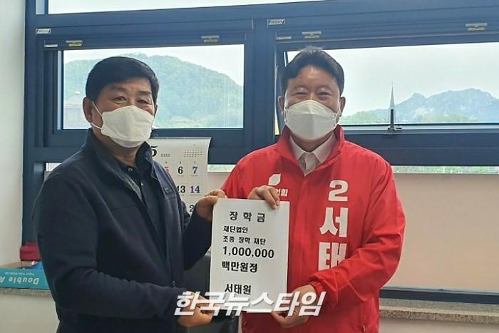 9일 국민의힘 서태원 가평군수 예비후보는 선거사무소 개소식을 개최하지 않은 대신 비용을 장학재단에 기부하였다고 전했다.