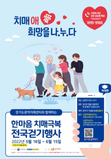 [한국뉴스타임=편집국] 남양주시는 오는 5월 16부터 6월 15일까지 31일간 남양주 시민을 대상으로 비대면 ‘한마음 치매 극복 걷기 행사’를 진행한다.