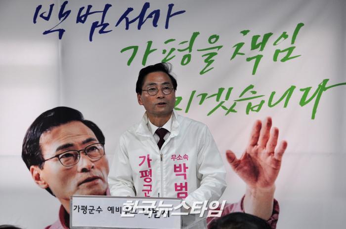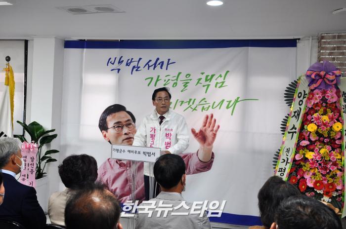[한국뉴스타임=보도국] 가평군수 무소속 박범서 예비후보는 10일 오후3시 가평버스터미널 옆 신협건물 3층에 위치한 선거사무실 개소식 개최하고 본격적인 선거운동을 시작했다