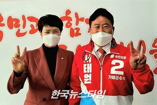 | (지난달 17일 포천시를 방문한 김은혜 경기지사 후보와 서태원 가평군수 후보) |