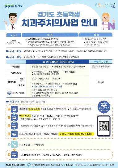 치과주치의 사업은 예방 중심의 포괄적인 구강보건서비스를 통해 구강 행위의 변화와 아동의 영구치 우식률 감소 등 치아 개선 효과가 높은 초등학생 4학년을 대상으로 시행한다.
