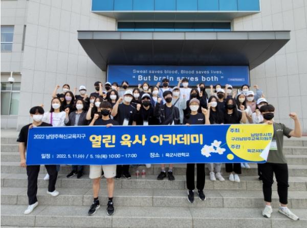 ‘2022 남양주혁신교육지구-열린 육사 아카데미’는 남양주 관내의 다양한 체험처와 연계하고 학생들의 꿈과 끼를 찾을 수 있는 진로 진학의 길을 확대하기 위하여 육군사관학교를 탐방하는 프로그램이다. 육군사관학교는 평소에 학생들이 쉽게 다가설 수 없는 장소이나 이번 활동을 기회로 남양주 관내 중고등학교 학생 자치회 학생 및 군인의 꿈을 가지고 있는 학생들이 참여할 수 있었다.