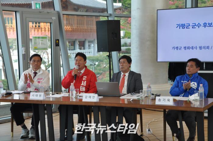 이날 간담회에는 가평군수 후보 더불어민주당 송기욱, 국민의힘 서태원, 무소속 박범서, 무소속 강태만 후보자와 평화대사협의회 회원 및 각계 관계자들이 참석하였다.