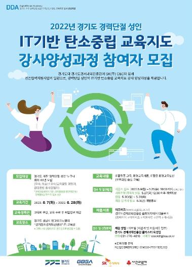 [한국뉴스타임=편집국] 경기도는 SK㈜ C&C, 경기도경제과학진흥원과 함께 정보기술(IT) 기반 탄소중립 교육지도 강사 양성 과정을 지원한다고 13일 밝혔다.