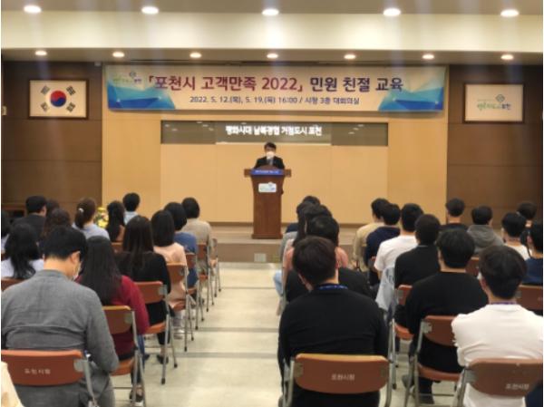[한국뉴스타임=편집국] 포천시는 지난 12일 시청 대회의실에서 전 부서 직원 대상으로 민원 행정 서비스 향상을 위한 민원 친절 교육을 실시했다.