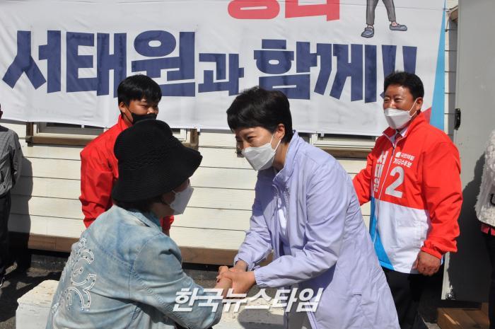 오는 14일 오전 김은혜 경기도지사 후보는 국민의힘 서태원 가평군수 후보 선거사무소를 방문하여 지지자들과 일일이 악수를 하며 지지를 호소했다.