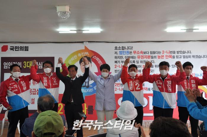 이날 김은혜 후보는 “군사보호시설, 상수원구역 규제 등 특별한 희생을 한 가평군 등 경기북부지역에 특별한 보상을 하겠습니다. 가평에서 원하는 것을 지원하고 우리 모두가 잘 살 수 있는 가평을 만들겠습니다“라고 밝혔다.