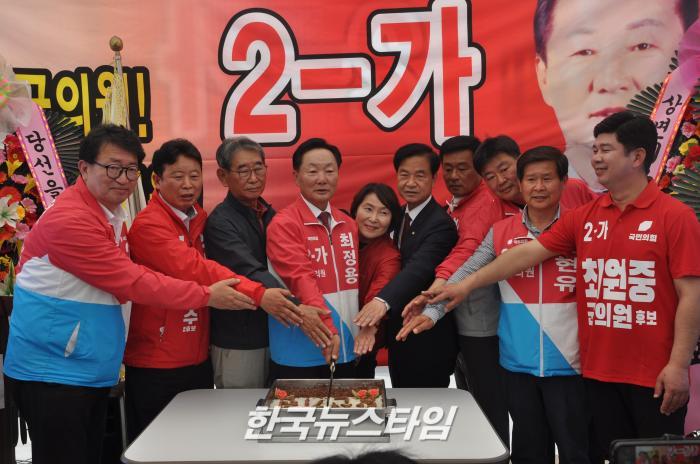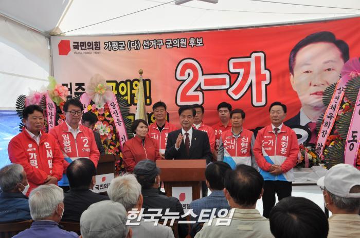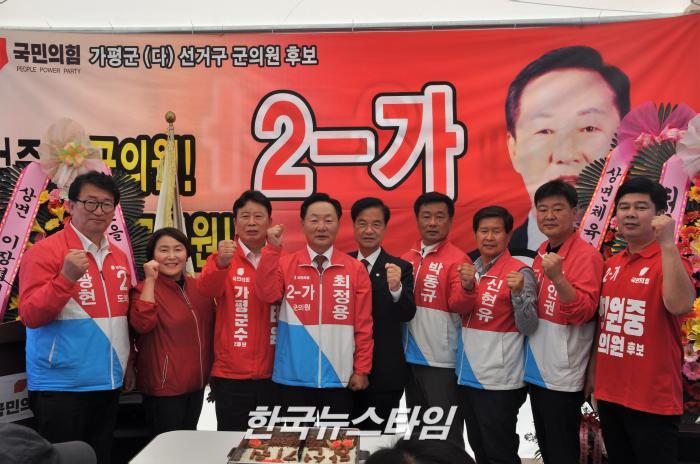 [한국뉴스타임=보도국] 12일 오전 6.1지방선거 가평군의원 다선거구(상면.조종면) 국민의힘 가번에 출마한 최정용 군의원 후보가 선거사무소 개소식을 개최하였다.