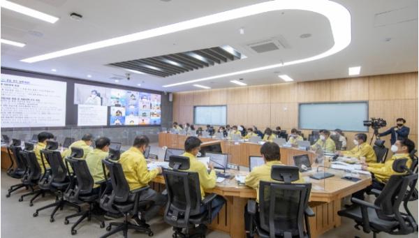 경기도는 18일 오병권 경기도지사 권한대행 주재로 광교 신청사 재난안전상황실에서 실·국장, 31개 시·군 부단체장과 영상으로 여름철 자연재난 대책 점검회의를 개최했다.