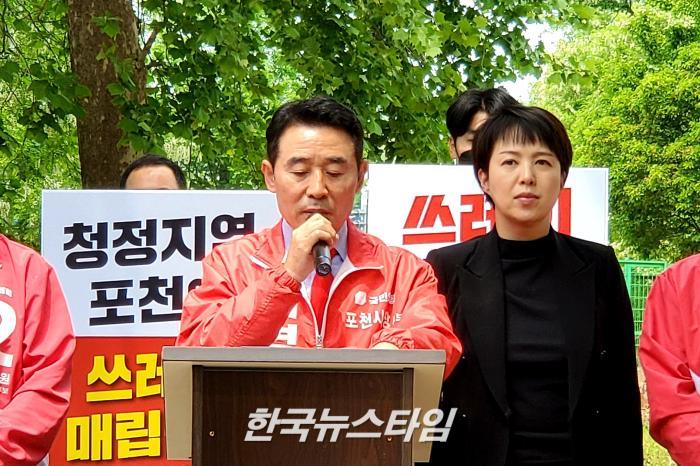 [한국뉴스타임=포천] 더불어 민주당 박남춘 인천시장 후보가 “윤석열 정부의 수도권대체 매립지 후보지는 포천”으로 지목했다는 망언에 김은혜 국민의힘 경기도지사 후보, 백영현 포천시장 후보는 소흘읍사무소에서 긴급기자 회견을 갖고 포천시민과 함께 온몸으로 막아낼 것이라고 했다.