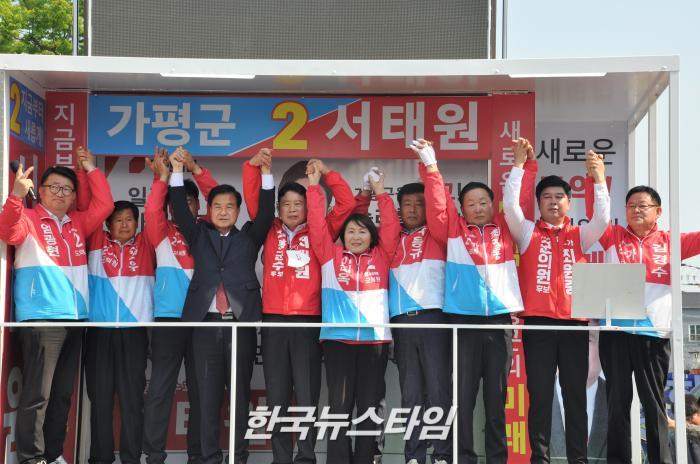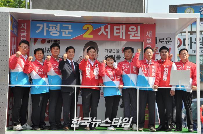 서태원 가평군수 후보는 ”절대 흔들리지 않고 전진하겠습니다. 군민 여러분들만 바라보며, 꿋꿋하게 나아가겠습니다. 군민 여러분의 토종 일꾼, 서태원이 반드시 군수가 되어 여러분들의 살림살이를 보살피겠습니다.“라고 호소했다.